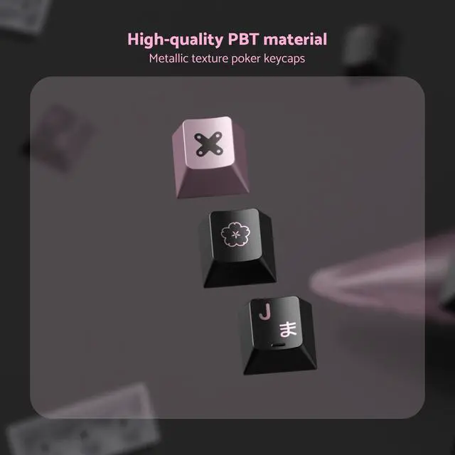 High-quality PBT material and metal paint finishThe Mechanical Keyboards keycaps core is made of high-quality PBT material (Polybutylene Terephthalate), which is renowned for its high hardness, wear resistance and oil resistance, ensuring a dry touch even after long-term use. The surface is covered with a solid metallic paint layer, which not only has an outstanding gloss but also effectively resists scratches, thus extending the service life of the keycaps. ^^ comfortable factory height and ergonomic designadopts Cherry factory height (Cherry Profile). This height has been verified over many years. Its moderate height and slope are ergonomic, effectively reducing finger fatigue caused by prolonged typing or gaming, and providing an accurate and comfortable input experience.