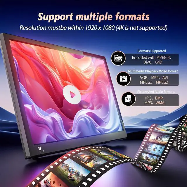 Built-in USB port, supports playing MP4, AVI, MPG, MOV, MKV, TS, TRP, VOB, DAT, MPEG 1, MPEG 2, MPEG 4, XVID, H. 264, H. 265, MP3, WMA, M4A, AAC, JPG, JPEG, BMP, PNG, TEXT.