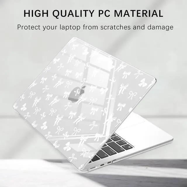 Exquisite Bow Design: The transparent laptop shell perfectly matches laptop in various colors, and the cute kawaii white bow bowknot pattern design is fashionable and simple ^^ Easy Installation and