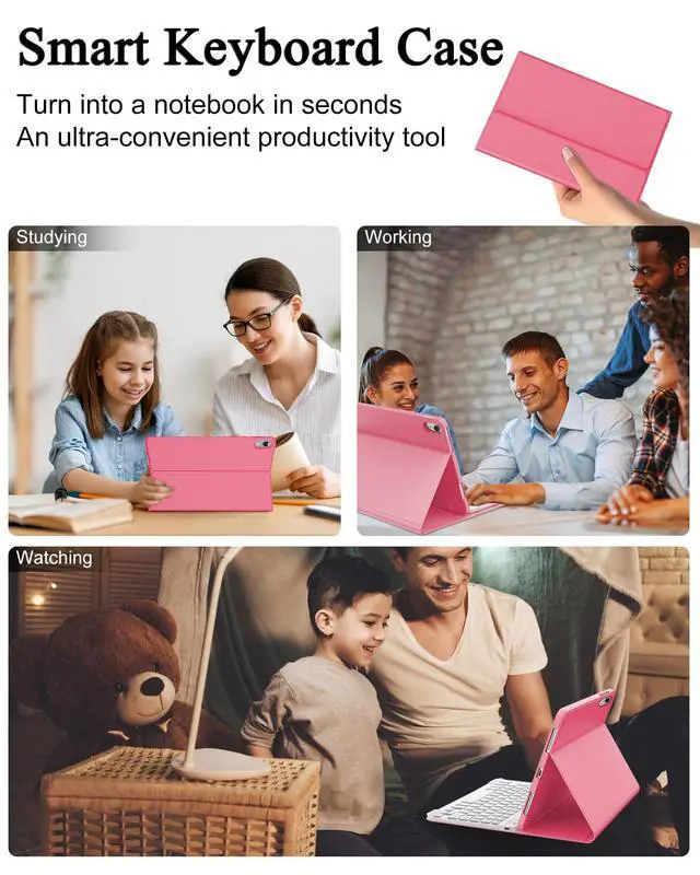 Generation (2022) 10.9 -inch (Models: A2696, A2757, A2777) and iPad 11th Generation A16 (2025). It is Not compatible with any other models. Please check the model number starting with "A" on the back of your iPad before purchasing. ^^ Multiple Viewing AnglesThis iPad 11th generation case has 3 grooves to adjust the viewing angle as you like, make your tablet stand steadily. Turn your iPad into a laptop in one second, perfect for studying, working, writing, painting, reading or watching videos. ^^ Magnetically Detachable KeyboardThe keyboard case for ipad 10th generation is magnetic so it can be easily repositioned or removed from the case. Equipped with useful shortcut keys and compatible with IOS, Windows, and Android systems, provide you with ultimate convenience. ^^ Rechargeable and Long Life BatteryOur case with keyboard for iPad built-in 420mAh large capacity battery, more energy saving and lower consumption, ensure you can use at least 230 hours. It can be fully charged in 2 hours with Type-C charging cable, don't need to replace battery. ^^ Convenient Pencil HolderThe 10th gen ipad case designed with pencil holder and pen slot, the cutout in the back makes it easy to take the stylus out for use.