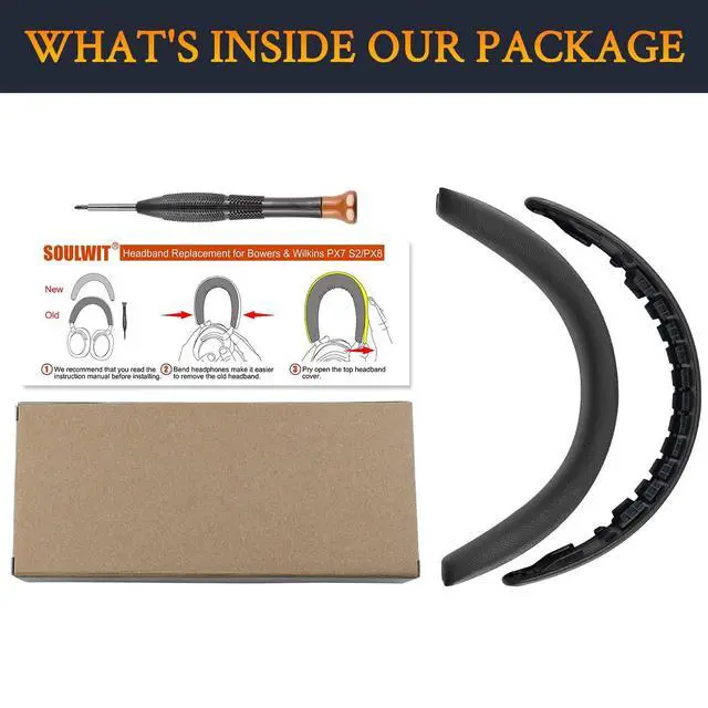 SOULWIT Lambskin Top+Bottom Headband Cover for Bowers & Wilkins PX8/PX7 s2/PX7 s2e (Do Not Fit PX7) Headphones, Replacement Headstrap Pad Repair Part - Black