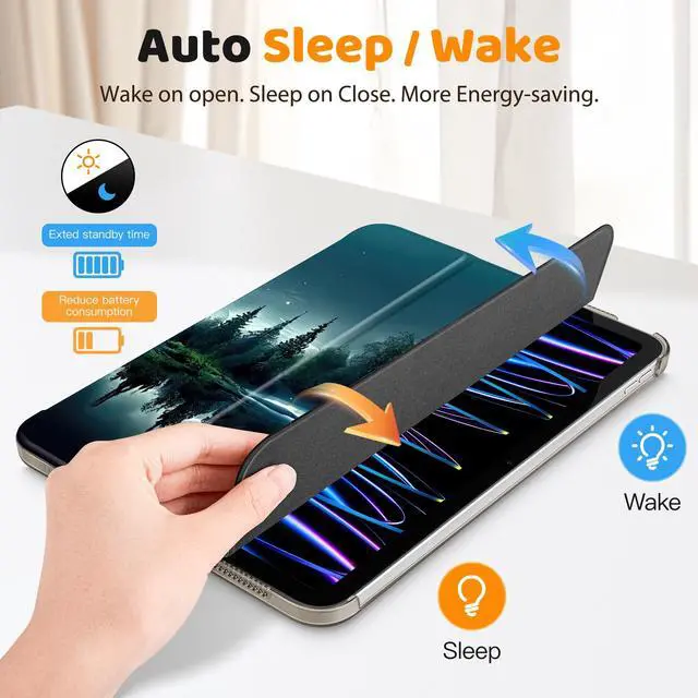 Wake: Built-in magnetic strip, automatically wakes or puts your tablet to sleep when the lid is opened and closed. Protects and extends battery life. Powerful built-in magnets ensure a strong lock between the case & iPad. ^^