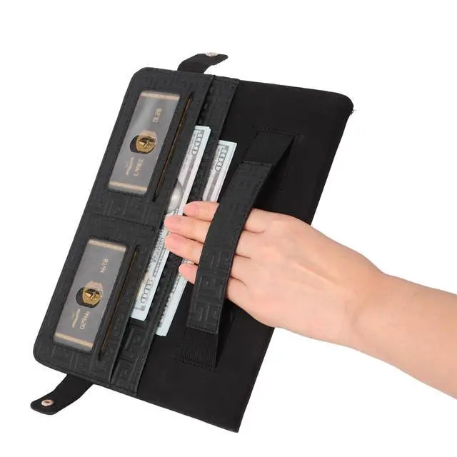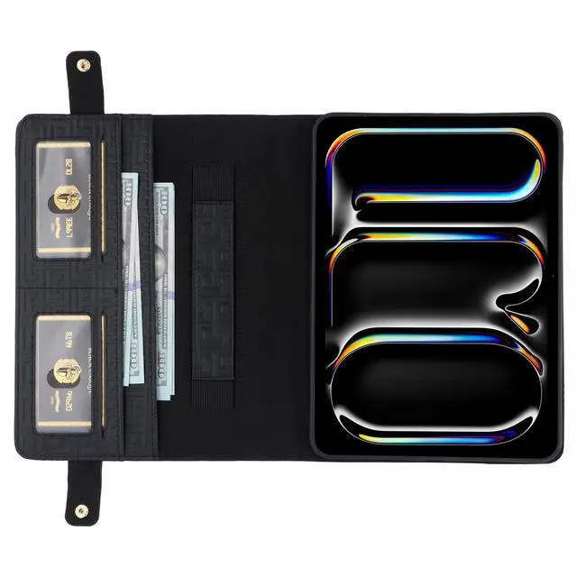 Wallet Design: An envelope pocket external allows you to store your passport and some paper files; also a pencil case pocket designed for Apple Pencil 2 or Apple Pencil Pro; interior with multiple slots for holding your cards and cash.
