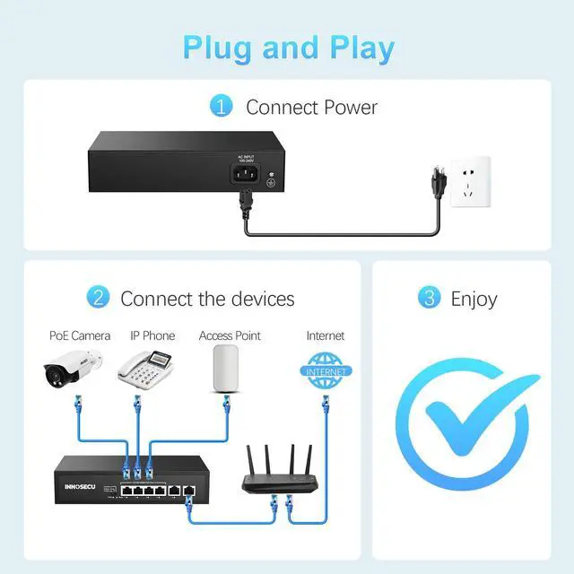 ^^ Plug-and-Play Unmanaged Switch: Requires zero configuration - simply connect via Ethernet cable. Supports both desktop and wall-mount installation for flexible deployment. ^^ 250m