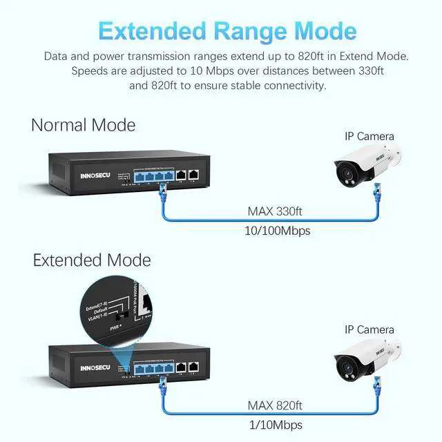 Extended Reach Technology: 3~4 Ports PoE can extend the maximum transmission distance for both power and data from 100m to 250m, significantly reducing cabling challenges and installation costs.