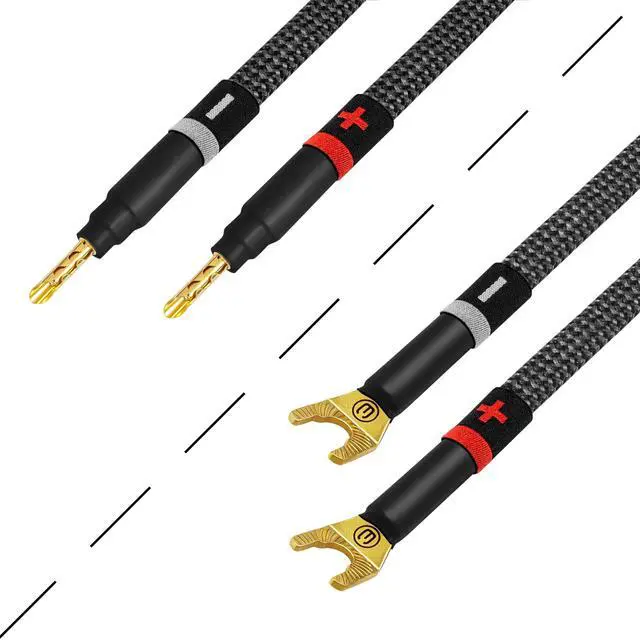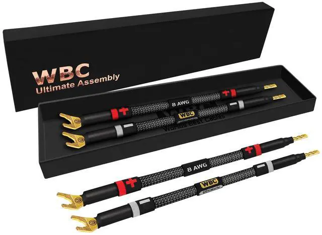 The high-end packaging, makes these a great gift for any Audiophile or Music Lover who will appreciate handcrafted, high quality audio cabling. The braided Tweed cloth jacket and embroidered labeling will compliment your high-end gear quite tastefully; this is truly The Ultimate speaker cable. ^^ At WBC we only use the highest-grade connectors for these audiophile cable assemblies. Eminence 3-micron, 24K Gold plated, audiophile-grade, 4mm (standard diameter) banana plugs with a fully insulated body to prevent accidental shorting & multi-spade connectors, (compatible with 8mm and 6mm binding posts), provide superior abrasion & corrosion resistance and unrivaled performance.