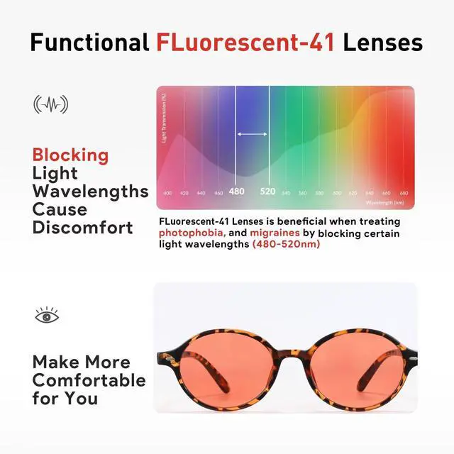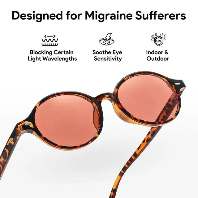 Migraine GlassesOur special rose-tinted lenses are designed to filter light within the 480nm-520nm wavelength range, which can trigger migraines. These lenses alleviate sensitivity to fluorescent lights and migraine symptoms in both women and men. They also function as computer glasses, minimizing the impact of screen light on the eyes and providing a comfortable visual. ^^ Multifunctional Indoor-Outdoor Reading GlassesThese reading glasses serve as both indoor light-sensitive glasses and outdoor tinted glasses, reducing eye strain and migraine symptoms caused by outdoor sunlight, indoor screen light, and artificial lightingensuring long-lasting comfort. Tailored for individuals seeking light-sensitive glasses, pink-tinted glasses, or indoor light-sensitive eyewear, they offer a comfortable fit while providing effective protection against various light sources.