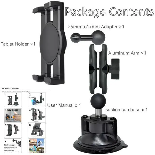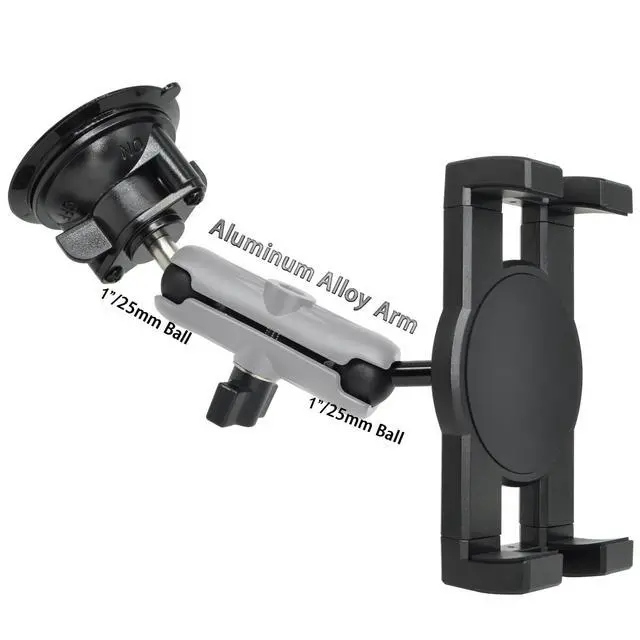 VAUBORTTI iPad Holder for Car Dashboard Windshield,Aluminum Arm Heavy Duty,Tablet Suction Mount for Window, Compatible with 6.5-12.9" Tablets/,1" Ball Mount