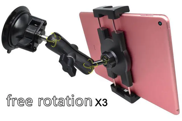 Superior Suction Power: Our ipad mount features a unique design with enhanced suction power. The bottom of the suction cup includes a recessed hollow cavity that, when the knob is turned, increases the volume of the hollow area, creating stronger suction.