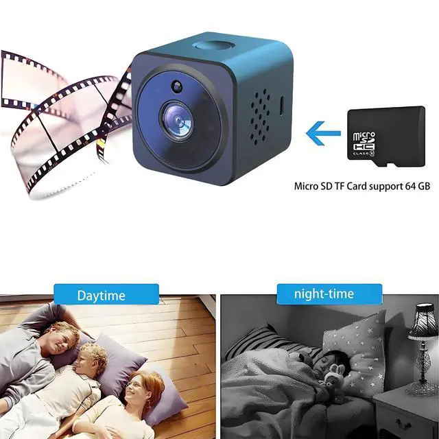 Upgraded HD Night Vision Cam: wireless security cam offer quality video and a wide view. They feature two night vision modes: full color and infrared, with a 18ft range. Day or night, you could get clear video monitoring. Access live or recorded video from anywhere with the app via Wifi. ^^ Hidden Small security camera protects data and data storage: The mini camera supports 64GB memory storage TF card to save the daily videos. When the storage is full, the latest will overwrite the expired records. You do not have to delete the expired videos by yourself. You can check the details within 2 weeks.