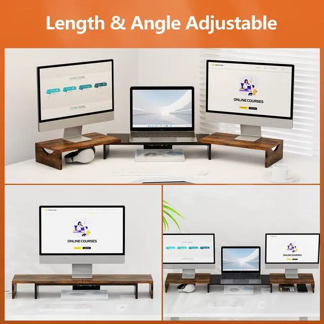 Triple Monitor Stand: The computer stand can accommodate 2-3 monitors, which is an ideal choice when you need multiple computers to work together. And it works on both laptops and desktops. With a maximum weight of 44 pounds, you don't have to worry about collapsing or shaking during use. ^^ Adjustable