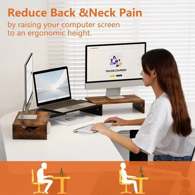 Ergonomic Design: The monitor riser features an ideal ergonomic design for easier operation, allowing you to raise the computer screen to a comfortable eye level, reducing the risk of neck and eye strain while providing a better viewing experience.