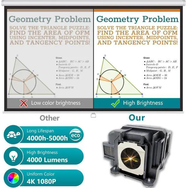 A++ Quality: 12 years of research and tests. 80% brighter and twice the lifespan of ordinary bulbs. Our bulbs last over 5000 hours. No frequent replacements. Enjoy stable, vivid projection! ^^ Easy to