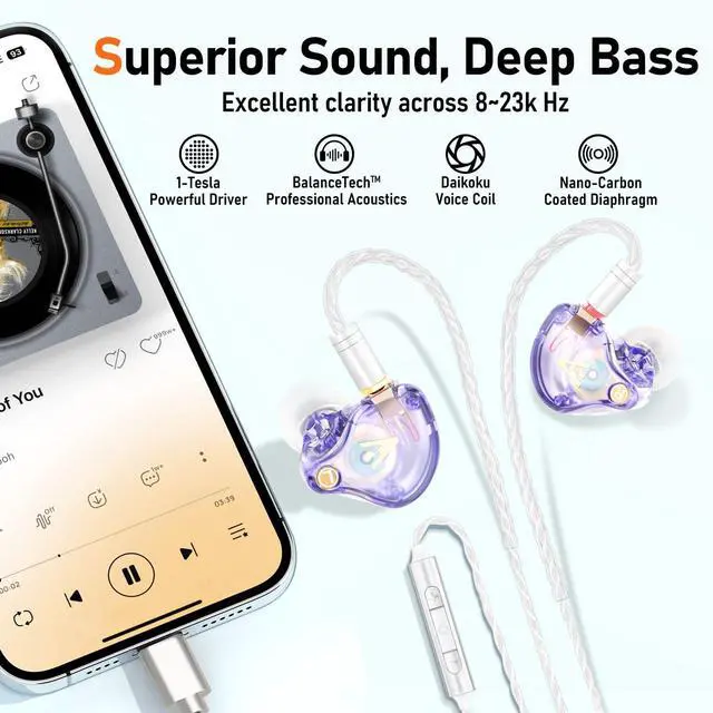 FOR MUSICIANS & AUDIOPHILES Vibes 202MC wired earbuds with a USB-C connector and microphone deliver high-fidelity sound for musicianssingers, drummers, or guitaristsand audiophiles seeking natural, detailed HiFi stereo sound. Experience powerful bass, rich mids, and crisp highs, plus spatial depth and crystal-clear calls, immersing you in studio-grade audio. ^^ EXCEPTIONAL HIFI SOUND - Equipped with a 1-Tesla powerful driver and master-tuned professional acoustic chambers, the Vibes 202MC HiFi in-ear monitor earphones deliver precise and detailed sound across a full frequency range from 8 to 23k Hz. The high-purity, silver-plated, Litz-braided audio cable ensures stable and lossless sound transmission for pure, unaltered audio.