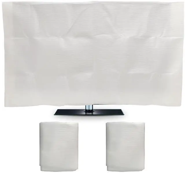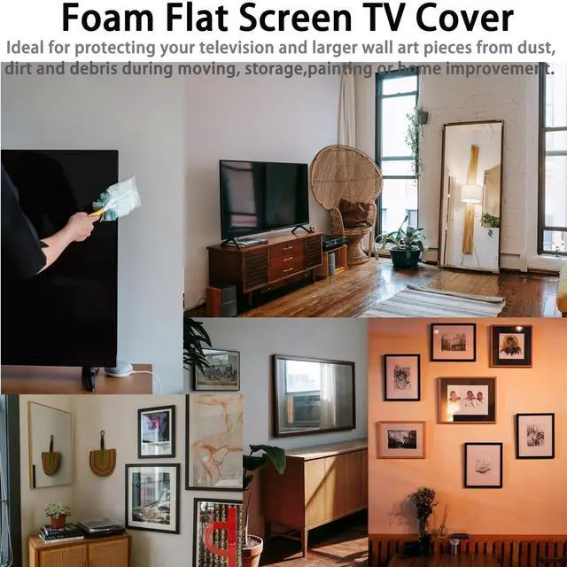 Package Content: 2 pcs foam flat screen TV protective cover, Fits TV Screens up to 50"-55". (Before order please measure your TV size. ) ^^ Professional Design - 55"L x 32"W. This foam flat screen TV cover is ideal for most LCD, LED, OLED flat screen TV and wall artwork, and can keep your TV and wall artwork from dust, dirt & debris when you moving, storing painting or home improvement. ^^ Wide