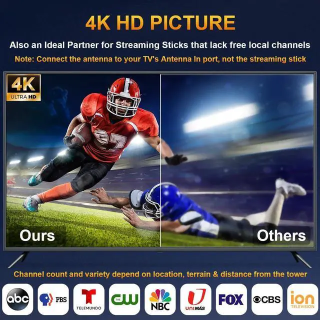 &: No more monthly bills! Our smart tv antenna for local channels indoor delivers free local news, sports, weather and more. Ideal for you to replace costly cable in home, apartment. Enjoy local channels in crystal HD. Depending on your location & distance from towers, receive available local broadcasts from major networks which may include ABC, CBS, NBC, PBS, Fox and more.