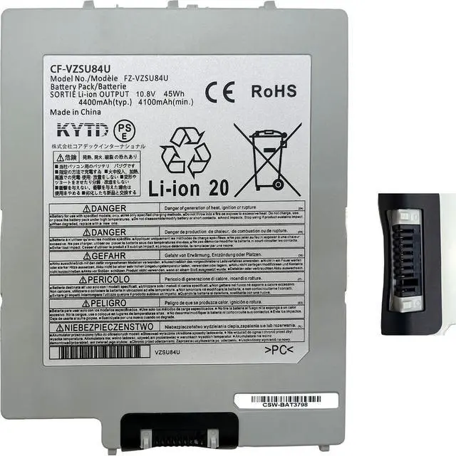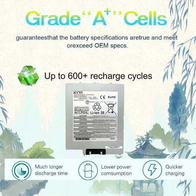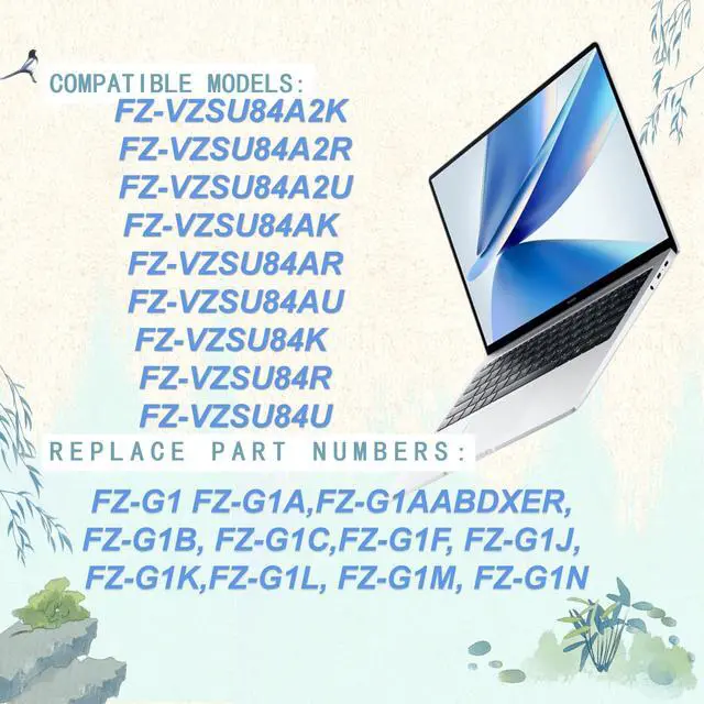 TRUE CAPACITY, LASTING PERFORMANCERigorously tested to match OEM standards, this Li-ion battery delivers a true 45Wh/ 10.8V capacityso you get dependable power that wont fade when you need it most. ^^ BROAD COMPATIBILITYcompatiable with for PANASONIC Tough-pad FZ-G1 Series ^^ part numbers: FZ-VZSU84U FZ-VZSU84R FZ-VZSU84UR FZ-VZSU84A2U FZ-VZSU84A2K FZ-VZSU84A2R FZ-VZSU84AK FZ-VZSU84AR FZ-VZSU84AU FZ-VZSU84K FZ-VZSU89U ^^ Security All KYTD products are certified by UL / CE / FCC / RoHS for safety. Were so confident in the performance of our replacement laptop batteries, strict guidelines for compatibility, strict quality control standards and standards compliance for environment safety. (including short circuit, overheat, and overload protections. ) ^^ Customer First Rest assured with 30 days Refund and 12 months Warranty; 24 x 7 email support. We specialize in providing quality power products and quality customer service.