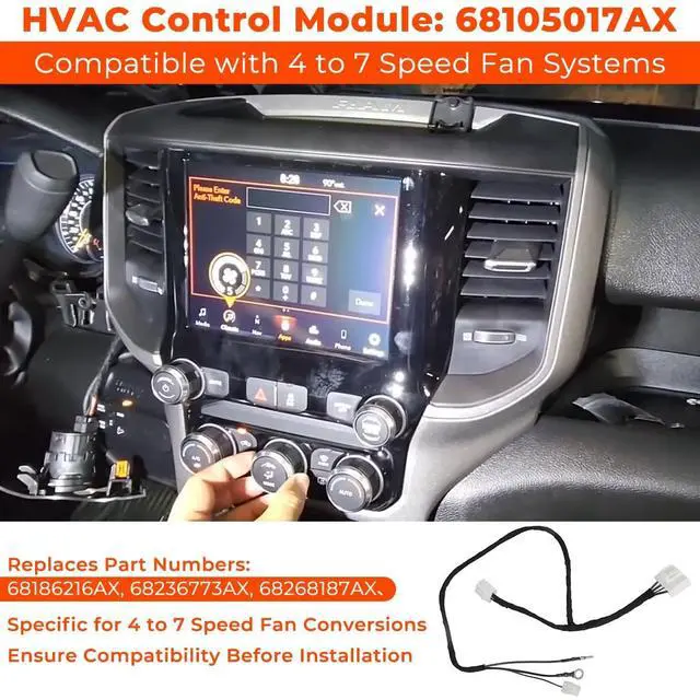 HVAC control module: 68105017ax (aa, ab, etc) (4 to 7 speed fan specific). replaces 68186216ax, 68236773ax, 68268187ax.