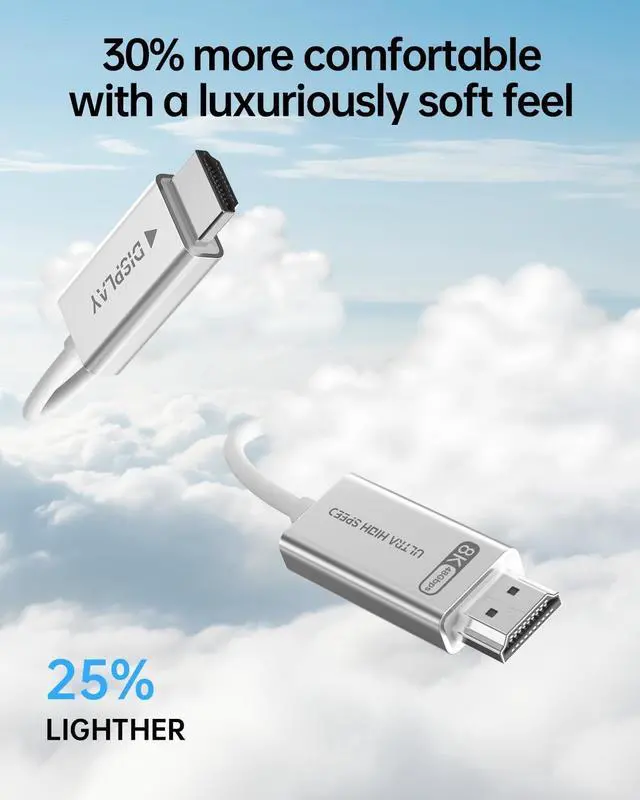 48Gbps High Speed HDMI 2.1 CableFuture-proof your setup with our Fiber Optic HDMI 2.1 Cable, delivering 48Gbps bandwidth for flawless 8K@60Hz/4K@120Hz. Perfect for gamers and cinephiles craving zero lag or compression. ^^ Sleek White Design, Discreet & AdaptiveUltra-thin white fiber optic HDMI 2.1 cable effortlessly blends into any decorhide it along baseboards, under rugs, or behind walls. Matte finish resists dust, while tiny connectors stay invisible behind TVs.
