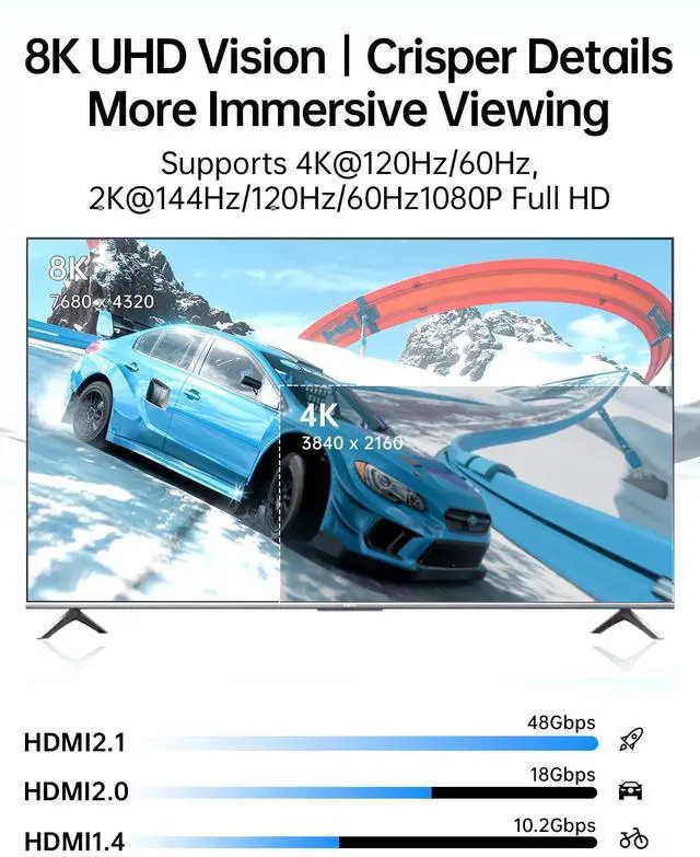 ^^ Gamer-Centric Features: Maximize RTX 4090 and AMD Radeon RX 7900 performance with 48Gbps bandwidth and 4K@120Hz/8K@60Hz. VRR and ALLM eliminate stutter, perfect for PC/console hybrid setups. ^^ Universal CompatibilityDesigned for PlayStation 5, Xbox Series X, RTX 4090/4080, Radeon RX 7900, and 8K Samsung/LG TVs, laptops, desktops, projectors, displays, screens etc. Backward-compatible with older HDMI devicesno adapter needed! ^^ 1-Year Warranty + Lifetime SupportBacked by a 1-year warranty and lifetime technical support.
