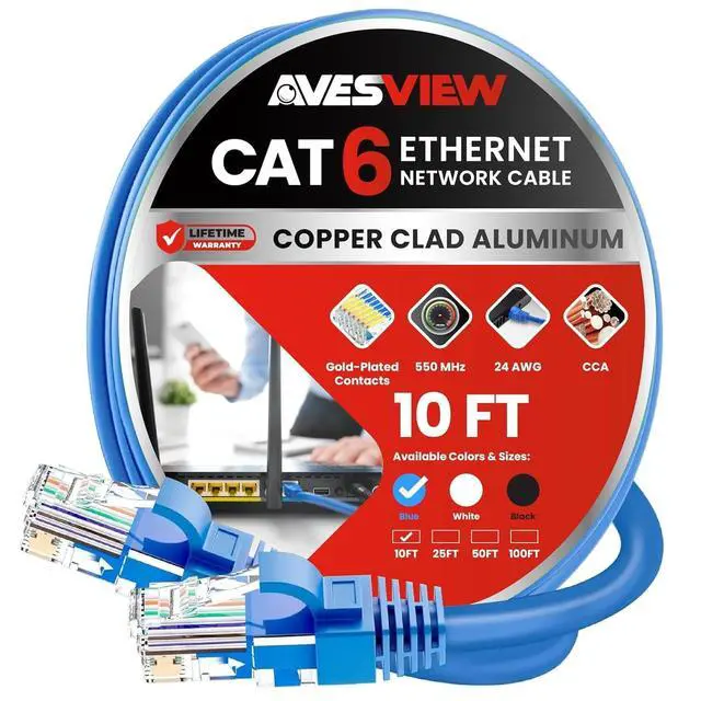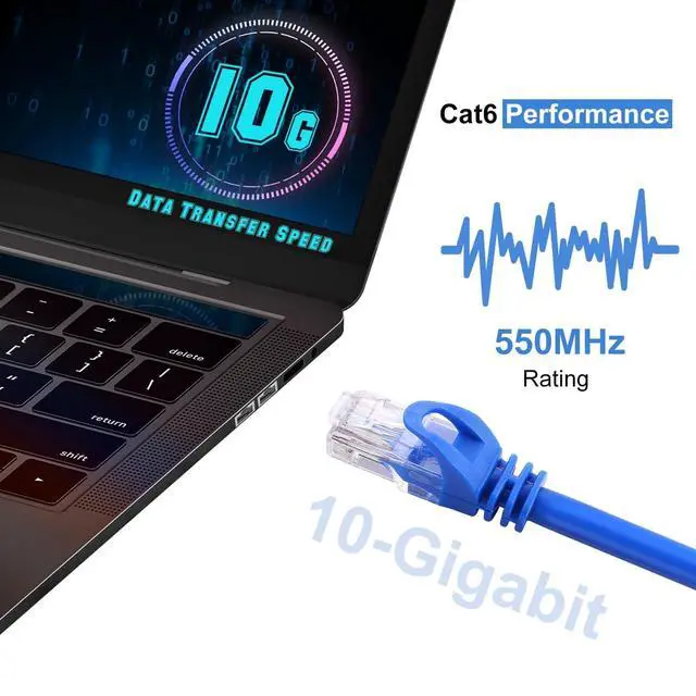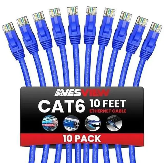 10-Pack Blue 10FT Cat6 Ethernet Cables High-Speed, Durable, and Cost-Effective Networking Solution Upgrade your network with this 10-pack of blue Cat6 Ethernet cables 10 ft, designed for fast, reliable, and stable connections. Whether you're setting up a home office, gaming station, or professional network, this Cat 6 cable 10ft ensures smooth, lag-free data transfer. With support for speeds up to 1 Gbps and 550 MHz bandwidth, these cables provide high-performance connectivity for all your Ethernet-enabled devices. Each 10 ft Cat 6 Ethernet cable is constructed with premium materials to minimize interference and crosstalk, delivering a secure and consistent wired connection.