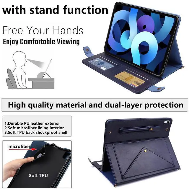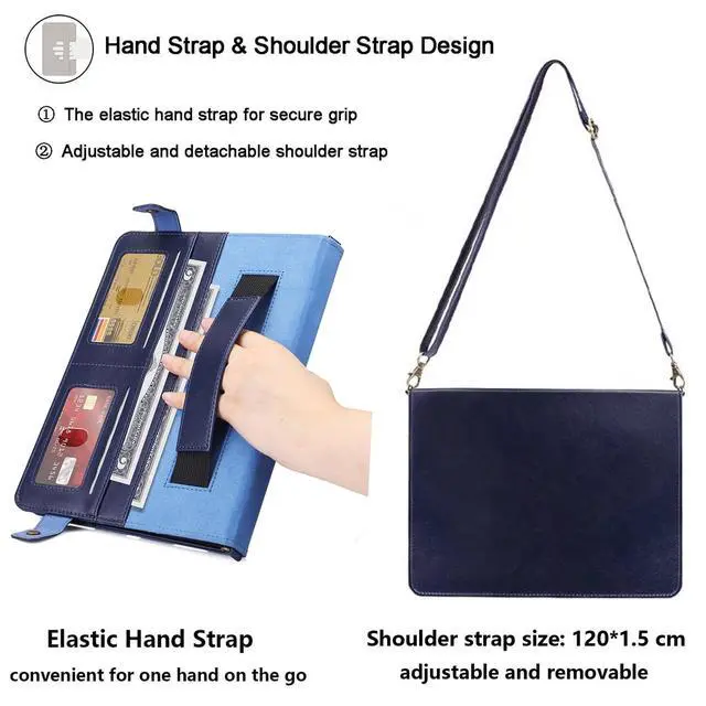 Adjustable Should Strap: Built-in hand strap, the wristband strap helps you hold or use you tablet easily and comfortably, avoiding falling due to skidding. It can be adjustable to fit the size of your hand.; the sleeve handbag case also has a detachable shoulder strap, it helps you carry your tablet conveniently when you are at work, on a trip or outdoors. ^^ with Pencil Holder & Card Slots & Cash Pockets; Envelope document design case designed with an extra stylus holder, Easily plug in/out, making the pencil always at your hand when you need it. The back shell is an envelope wallet design with card slots and cash pockets; and interior cards holder for storing your ID/credit/business cards, SD cards, photos, cash, note, ect. ^^ Raised Camera & Screen