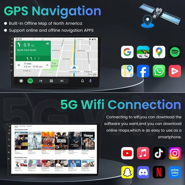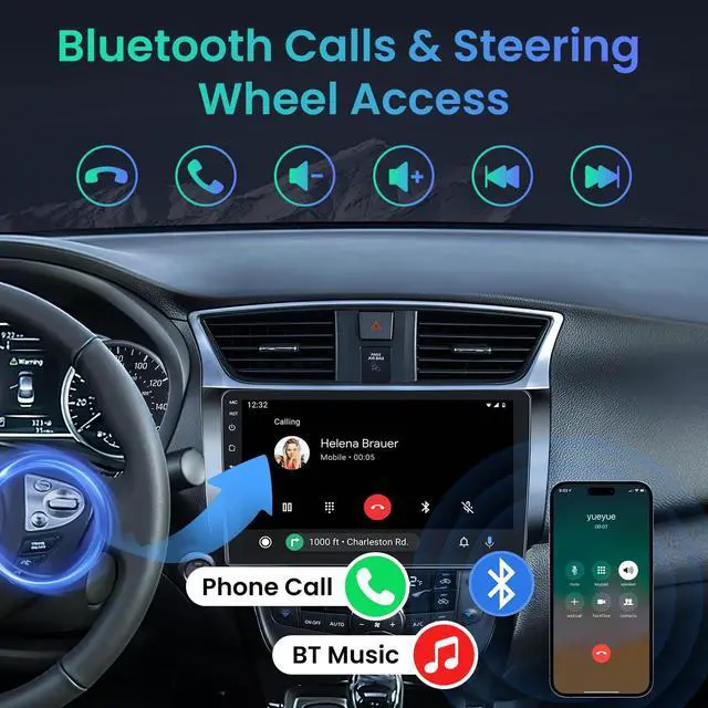 Compared to traditional 1.3GH z (2GB+32GB) configurations, it delivers a comprehensive performance leap. This not only significantly enhances system responsiveness, touchscreen fluidity, and map loading speeds but also ensures stable, smooth operation when running multiple applications simultaneously ^^ Wireless CarPlay & Android Auto Car Stereo for nissan sentra radio 2017 is compatible with IOS CarPlay and Android Auto. Connecting to your smartphone, this Sentra radio supports the following functions: music, map, phone, videos and more. Through the car stereo, you can get your direction from GPS navigation apps, such as Waze, and make calls by calling your smart voice assistant, freeing your hands to focus on safe driving. ^^ GPS Navigation & WiFi Connectivity This car radio for nissan sentra 2015 features a dual navigation system that supports both offline and online maps. This enables safe driving even in areas with weak or no cell reception. Additionally, by connecting to WiFi, you can access various phone functions directly on the Android Sentra car stereo, enhancing convenience and connectivity. ^^ Convenient Steering Wheel Control & Backup Camera The car radio for nissan sentra 2016 seamlessly integrates with the original steering wheel, allowing you to control the audio system easily and safely while driving. It comes with a 170 viewing angle night vision waterproof backup camera, ensuring clear visibility while reversing, eliminating any concerns about potential blind spots. ^^ Built-in Bluetooth & FM Radio This upgraded car radio for nissan sentra 2017 supports Bluetooth hands-free calling and music playback. It includes a built-in microphone and supports both built-in and external microphones, ensuring clear communication.