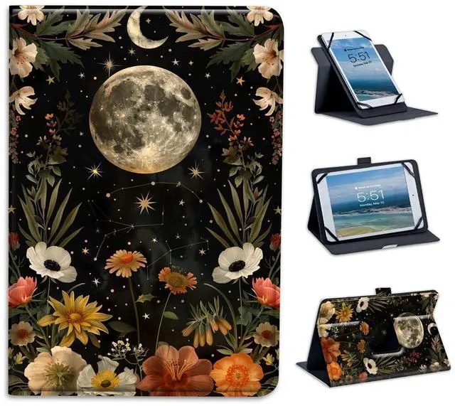 Compatibility: Suitable for most 7 to 9 inch tabletsApplicable to the following models: For For M8-8505/8705, for TAD 2020/307 ( 8.4 inches)/A7 lite Youth Edition 8.7 inches 2021/ Kindle flre HD 8 2016/2017/2018/HD8 2018 (8 inches) /HD8 2020/HD8 2020/2022/HD8 2020 with gears1. This universal tablet case is designed to be simple yet sturdy, suitable for tablets 7-9 inches in size. Whether it's for work, study, or entertainment, it can provide thoughtful protection for your devices. 2. The 360 degree rotation adjustment function allows you to adjust the angle of the tablet at any time, adapting to different usage scenarios such as office work, drama watching, and photography, allowing you to use your tablet freely. 3. The magnetic closure design allows you to quickly open or close the tablet shell, and four snap fasteners ensure that your tablet is stable and not easily dropped. At the same time, the shell provides comprehensive protection to prevent damage to the tablet from impact or falling. Cute tablet cases are made of high-quality materials that provide comprehensive protection, effectively absorbing impacts and vibrations, reducing damage from falling or colliding tablet. It should be noted that this product does not support automatic sleep wake-up function, nor does it provide a rear camera opening for any device.