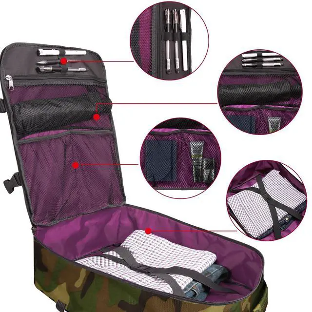 • PERSONAL ITEM BACKPACK Flight approved travel backpack opens like a suitcase small but spacious and lightweight. Backpack fits under airplane seat for most airlines like Allegiant or Ryanair. With splendid features make traveler walk through airport much easier, a padded grab-and-go handle, a convenient luggage trolley strap, backpack with separate laptop compartment making it easier to take out for security checkpoint