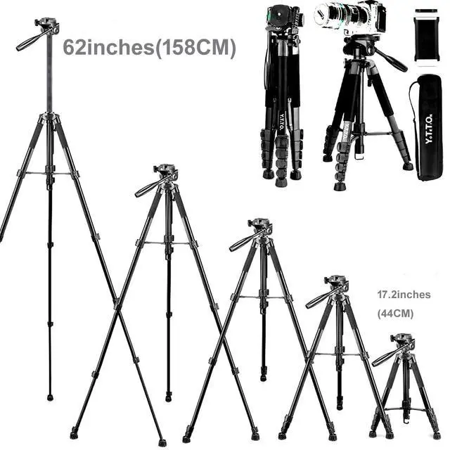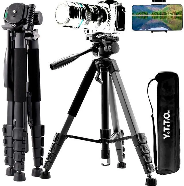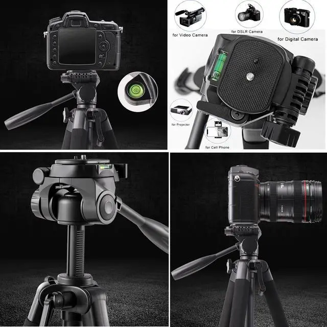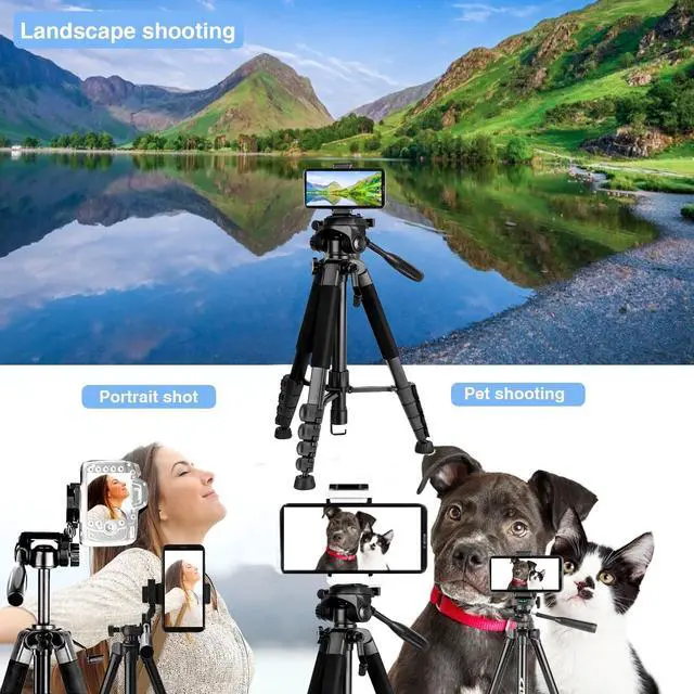 Head: Thefluid head pans 360 horizontally and tilts vertically from -70 to 90, giving you the perfect shooting angle and enhanced shooting experienceAdjustable shaft: Very smooth. When the tripod is fully opened, the height can be raised and lowered by releasing the axial twist; The bottom hook of the center shaft allows for the suspension of other items such as camera bags for added stability.