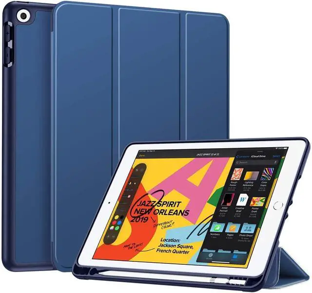Get a protective layer for your 10-2-inch Apple iPad with this SaharaCase Folio case. The rugged TPU and plastic construction helps prevent fall damage, while the raised edges help shield the screen and camera lens. This SaharaCase Folio case features a built-in holder for your Apple Pencil and precise cutouts for unobstructed port access.