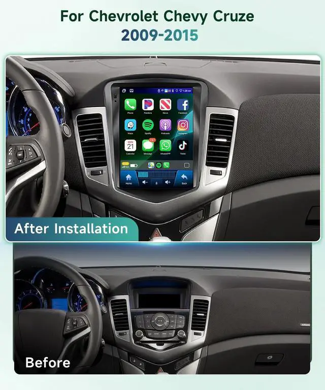 It also allow you to download various apps. ^^ Bluetooth 5.0 & FM/RDS & DSP/32 EQBluetooth 5.0 processes faster, more stable and smoother. Support Bluetooth phonebook, hands-free call, music playback. And there are 18 preset radio station, you can listen to real-time traffic, news broadcasts, etc. DSP 32 EQ audio providing you with the best tuning enhancements and customizing your music style. ^^ Wireless Carplay & Android Auto & Mirror LinkThis Chevy cruze car stereo is compatible with wireless Carplay and Android Auto, navigation, making calls, listening to music, sending and receiving messages.
