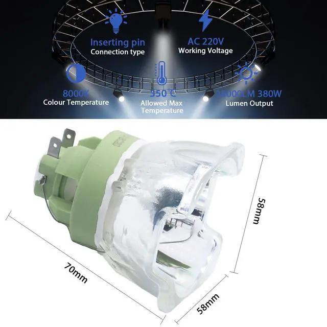 18R 380W ^^ The 18R 380W projection lamp, sold by Ctbaier, can accurately match the equipment and has the same brightness, durability and output stability as the original factory. ^^ The complete bulb module, can be easily replaced when the projector is off, as simple as taking out an old bulb, precise matching, without the need for a professional operator. ^^ Each wick of Ctbaier has undergone strict performance test before delivery, to ensure that each wick is of high quality and has a service life of 3000h, so you can rest assured and safely use it.