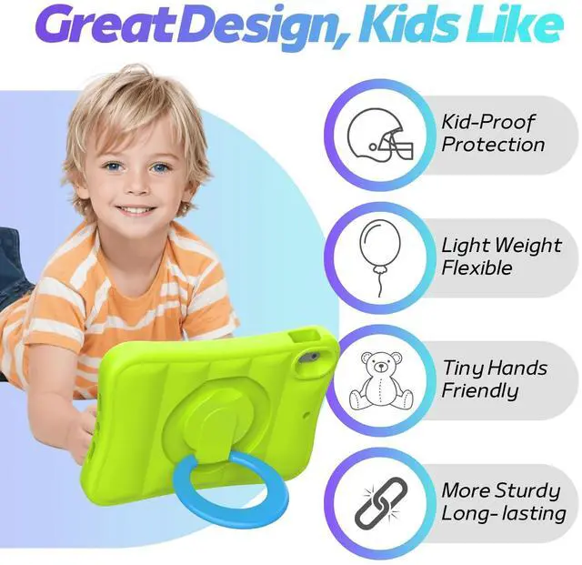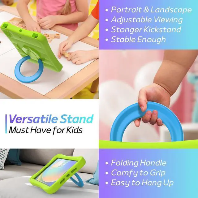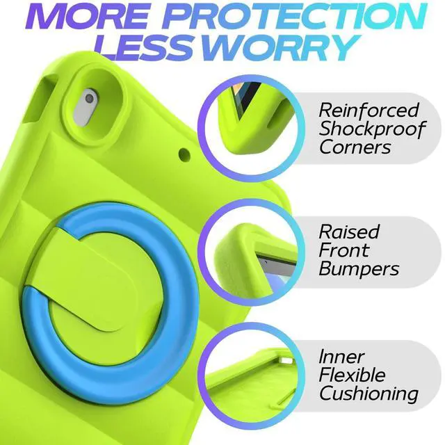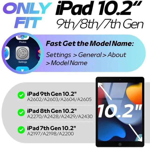 PLEASE FIT CORRECT IPAD DEVICE - This case can ONLY FIT the iPad 9th generation 10.2 inch (Model: A2602 A2603 A2604 A2605) / iPad 8th generation 10.2 '' (Model: A2428 A2429 A2430 A2270) / iPad 7th generation 10.2 in (Model: A2197 A2200 A2198). PLEASE CHECK THE MODEAL NAME OF YOUR IPAD CAREFULLY before purchase ^^ THE CASE MAKES KIDS LIKE - The case is kid-proof, featuring a friendly outline suitable for tiny hands. Made of high-performance, light weight and soft material, it is extremely comfortable to use. The versatile stand - handle is a must-have for children. Moreover, it is incredibly robust for long-lasting use ^^ ULTIMATE FLEXIBLE PROTECTION - The rugged case provides better protection with reinforced corners, additional front bumpers and inner soft cushioning, which is made of highly elastic EVA foam. It is capable of absorbing more impact and shock, protecting kids iPad from drops ^^ VERSATILE STAND HANDLE - Offering landscape, portrait and multiple viewing angles, the kickstand can easily free kids tiny hands. It is stable enough on several uneven surfaces, which is a challenge for most other stands. Open it to serve as a comfortable handle for gripping and carrying ^^ STURDY AND COMFY FOR USE - Well crafted with high-performance materials and reinforced construction. The case is very easy to assemble or remove. It has precise cut-outs for buttons, ports and cameras, enabling you to access all features with ease.