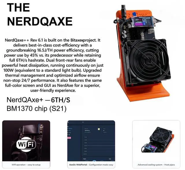 WiFi Connectivity: The Solo Miner built-in 2.4G WiFi module supports wireless connection, remote monitoring and management can be achieved without complicated wiring operations, ensuring a stable and secure connection for continuous mining ^^ Open-Source & Plug-and-PlayOpen-source firmware enables full customization & remote monitoring via an intuitive web interface for total mining control. Plug in power & network, and start mining within 5 minutes of unboxing