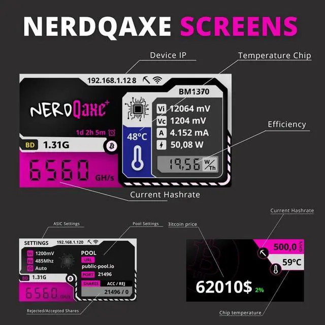 High Performance ASIC Mining Chip: NerdQaxe++ delivers 6 TH/s mining power with 4 advanced BM1370 Asic Chip, SHA-256 algorithms ideal for solo mining, maximizing your Bitcoins rewards ^^