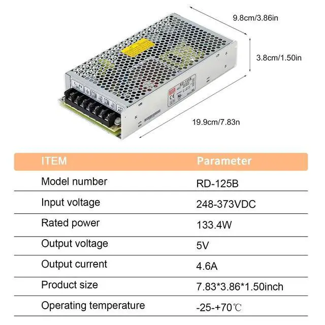 Globally Certified Power Specs: RD-125B delivers 5V 4.6A and 24V 4.6A dual output. UL, TUV, CB, CE certified. Ideal for powering industrial and LED lighting systems.