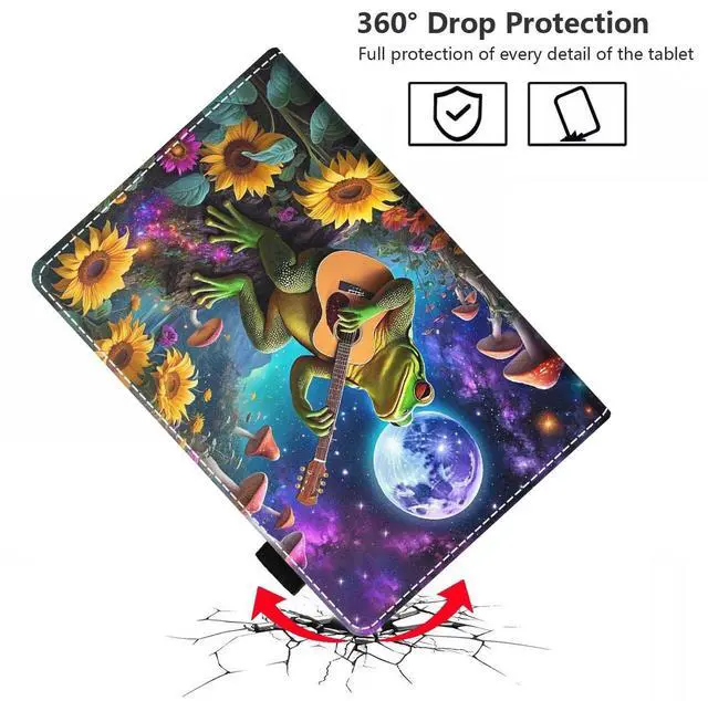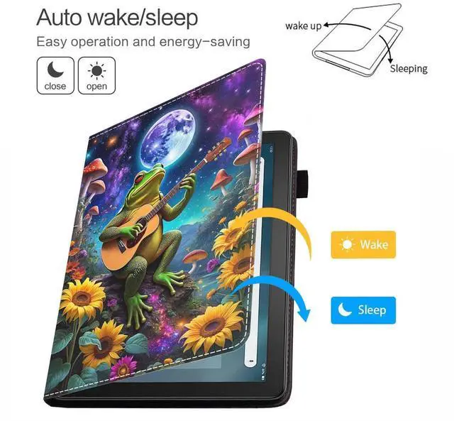 FVAENDHIO Case for Fire HD 8/Fire HD 8 Plus Tablet (12th/10th Generation, 2024/2022/2020 Release), Premium PU Leather Cover with Auto Sleep Wake, Funny Frog Playing Guitar