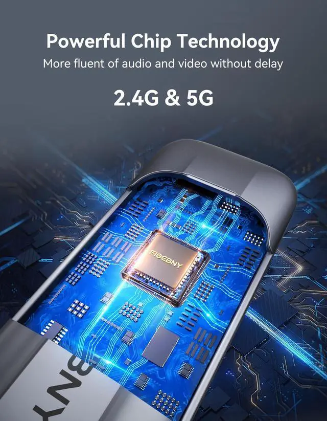 Transmission: FIGEBNY brings you state-of-the-art wireless screen mirroring with our innovative 2.4G /5G dual-band technology. Experience 4K and 1080P ultr high definition video up to 100 feet away, with high- signaling and nearly zero lag. Enjoy reliable signal transmission.