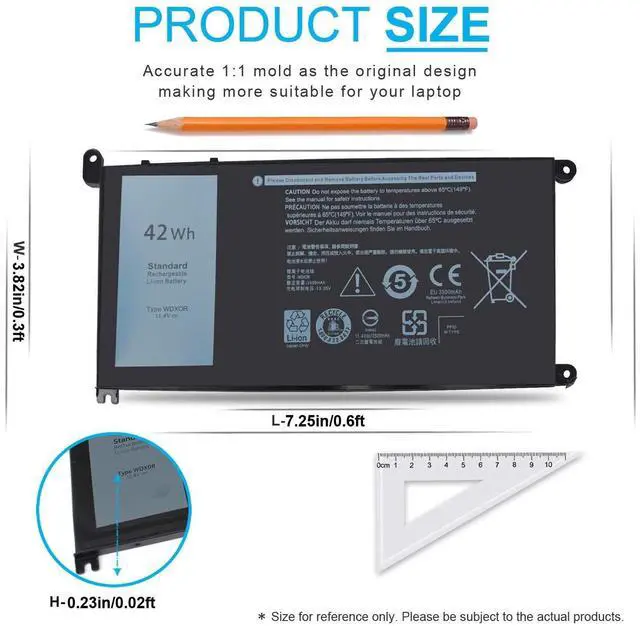 SECURITY: ECHEER 42Wh WDXOR notebook batteries have passed strict intelligent detection, such as short circuit protection, over voltage protection, discharge protection, over current protection, which is very important for batterys use cycle and safety. All batteries are equipped with high quality material to ensure good performance. Also CE, FCC, RoHS certificated. ^^
