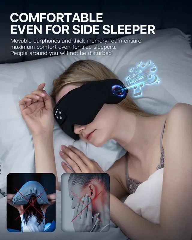 Sleep Mask with Bluetooth 5.4 Headphones, Sleep Headphones for Side Sleepers with Ultra-Thin Speakers, Long-Lasting Time Battery & Adjustable Strap for Unisex, Cool Tech Gadgets Unique Gift for Christmas Our sleep mask is made of mercerized cotton material, Soft and skin-friendly - It feels delicate and smooth, comfortable against the skin, and has better moisture absorption and breathability than ordinary cotton. It can quickly absorb and dissipate sweat, keeping the skin dry and comfortable. Wrinkle-resistant and wear-resistant - The fibers are tightly arranged, with high dimensional stability, making it difficult for wrinkles, shrinkage, or deformation to occur.