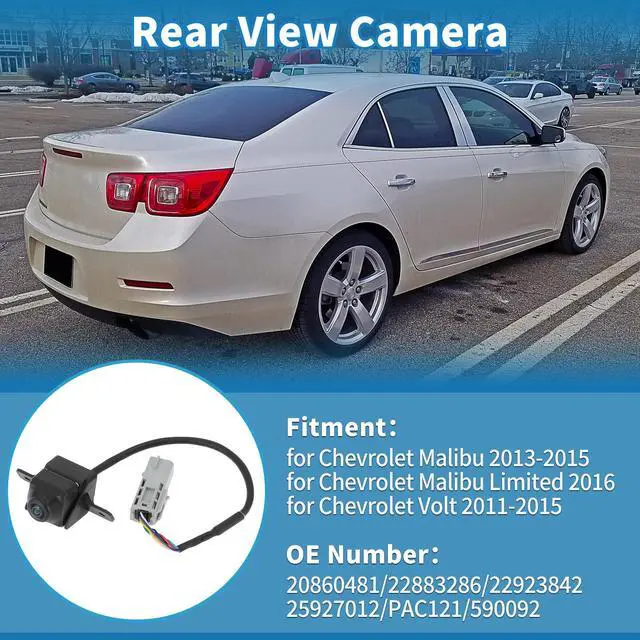 [Vehicle Fitment] This rear view camera is for Chevrolet Malibu 2013-2015, for Chevrolet Malibu Limited 2016, for Chevrolet Volt 2011-2015. Specific fit license plate camera replaces No. 20860481/22883286/22923842/25927012/PAC121/590092 ^^ [Crystal-Clear Visibility] Ultra-clear image quality. There're anti-fog HD glass and color CMOS image sensors inside this backup camera reverse camera so as to provide satisfactory color reproduction and a clear view for car owners. ^^ [Night Vision] With 170 degree wide view detection angle and 1920x1080 camera resolution, it performs normally also as night vision camera, even in the faint light like a dark underground garage.