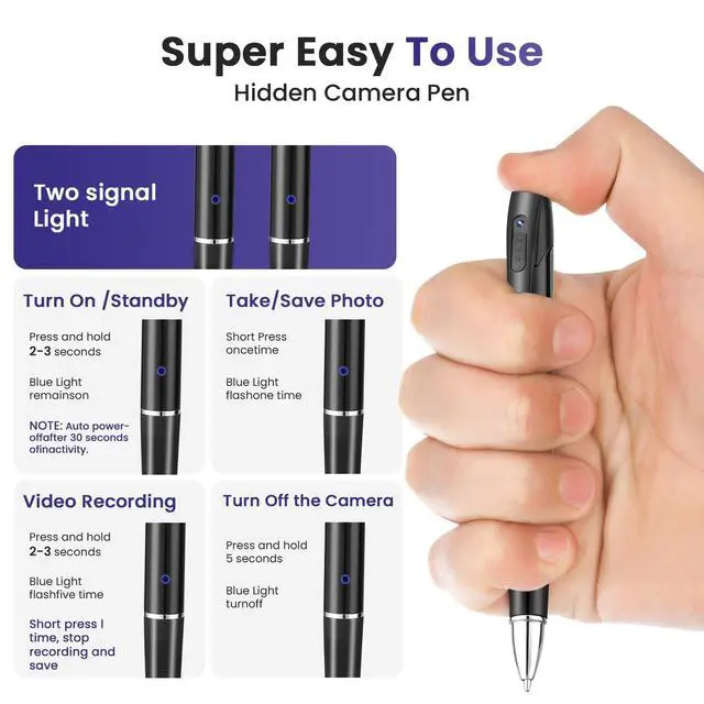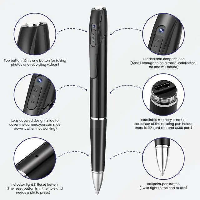 Full HD Camera: Sleek, pen-sized design allows you to effortlessly capture 1080P HD videos or photos with a single click, anytime, anywhere.