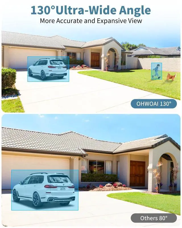 130Wide Angle ViewThis outdoor camera wired captures vivid footage with a wide 130 field of view, enabling clear surveillance of every corner. It allows for detailed scrutiny of specific areas. This closed circuit camera system, featuring a multi-layer optical wide-angle lens, offers approximately a 130broad field of vision, reducing blind spots in the surveillance area ^^ Two-Way AudioWith the security camera system outdoor, the built-in microphone and speaker on the outside cameras can achieve true two-way audio. They can record sounds within about 35ft (10 meters). The two-way audio function allows you to talk to the ones around the security cameras anytime anywhere, for both family communication and threat deterrence.