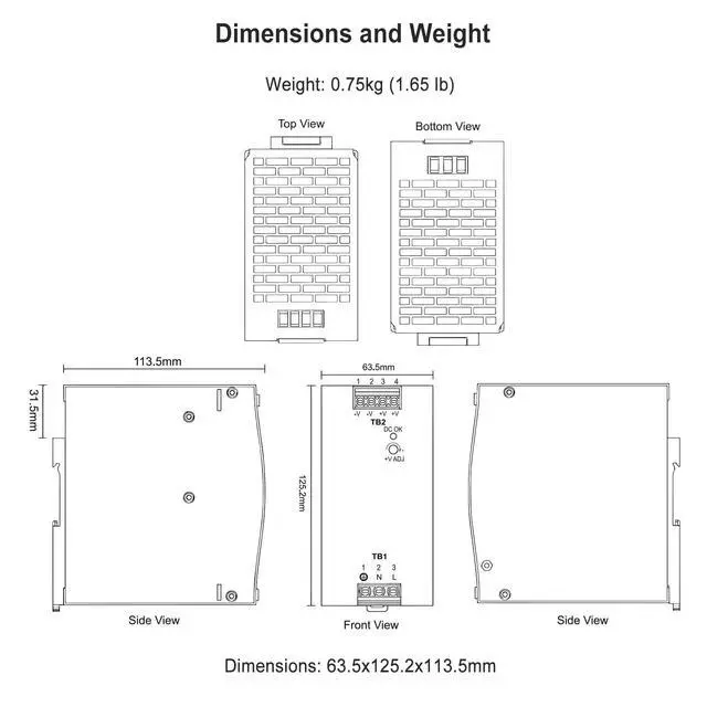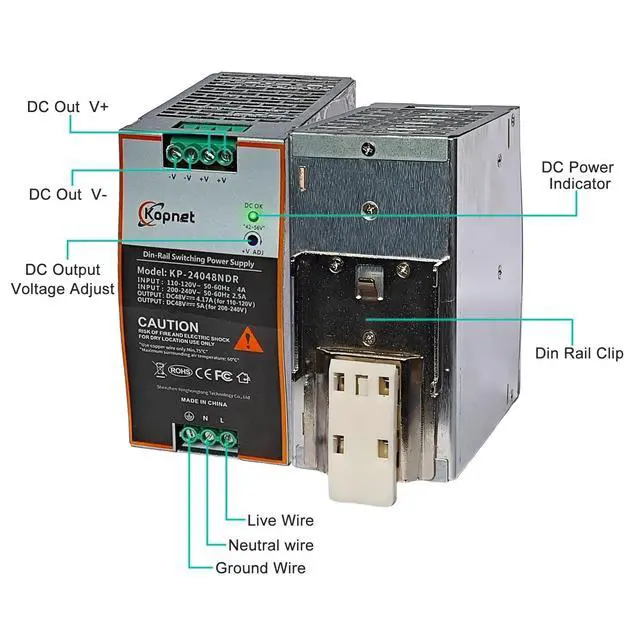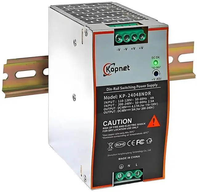 [240W 48V Industrial Power Supply] The Industrial 48V Power Supply is a universal DC power supply with max 5A output. No Fan design, it can work at wide range temperature -20C to 70C (-4F to 158F) and offers quiet, reliable and efficient power for your solution. ^^ [100~240V AC Input] The Din Rail AC-DC power adapter use universal 100~240V 50/60Hz AC input or 127~370V DC Input. ^^ [Output Voltage Adjustable] The Din rail Mount Power Converter supports voltage adjust, range is 42~56V DC. ^^ [Din-Rail Mount Installation] The Din Rail AC-DC Converter fits standard TS35/ 7.5 or TS35/15 Rail.