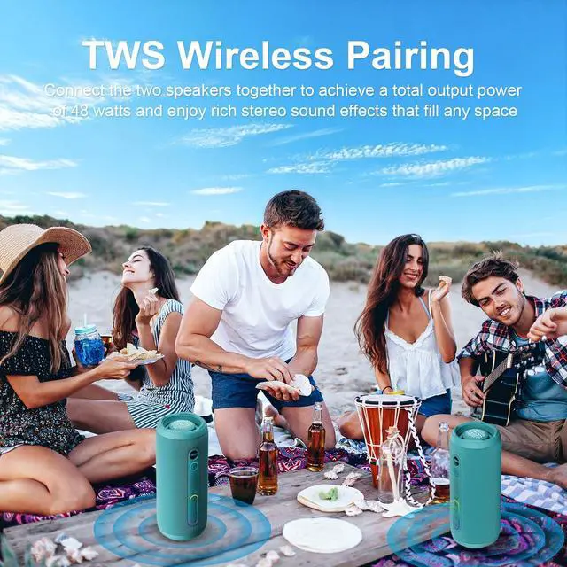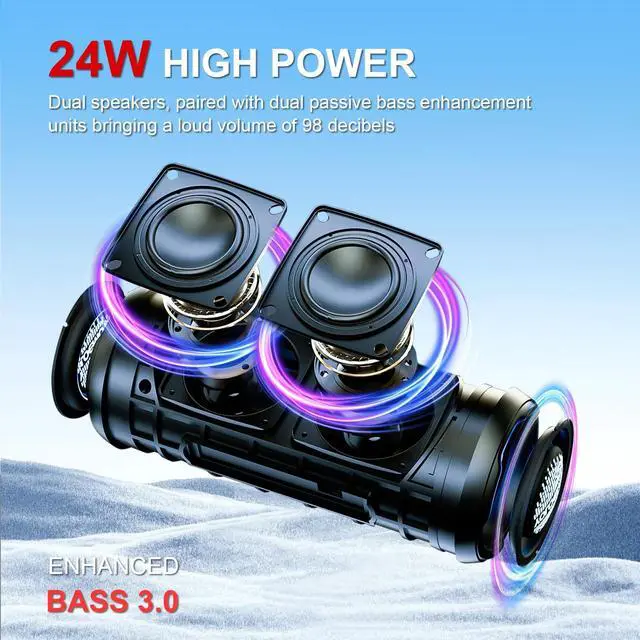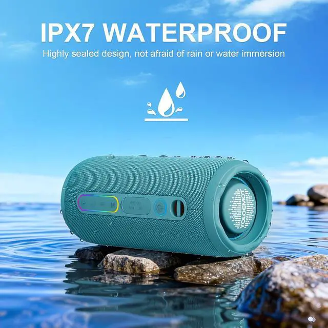 With a wireless range of up to 33 feet for fast, stable audio streaming anywhere. This loud Bluetooth speaker offers versatile connection options to pair effortlessly with all your devices, and it also supports TF card and AUX inputs to meet all your listening needs ^^ WATERPROOF AND DESIGNIt features a robust IPX7-level fully sealed waterproof and dustproof protection, easily coping with splashing water. Even if liquid is spilled or it is completely submerged in water, it can still withstand it with ease. IPX7 waterproof bluetooth speakers is compact in size but delivers powerful sound, and its versatile appearance suits all personal styles.
