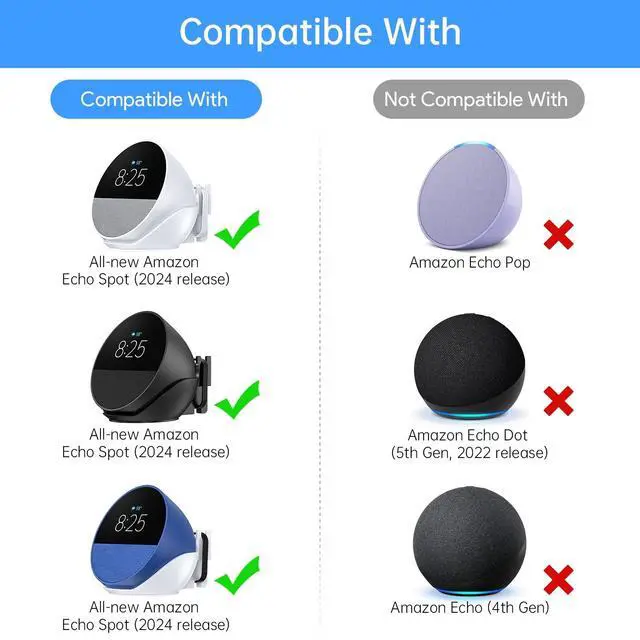 PERFECT FIT FOR SPOT (2024 RELEASE) Designed specifically for the Spot (2024 release), this wall mount bracket securely holds your device in place while blending effortlessly with any room decor. Enjoy a seamless setup that enhances your smart home experience. ^^ QUICK AND SECURE INSTALLATION Featuring premium stainless steel screws and an intuitive design, this bracket attaches firmly to walls in minutes. Follow the simple instructions for a hassle-free setup that ensures reliable support. ^^ DURABLE & SLEEK DESIGN Crafted from high-quality, sturdy materials, this mount offers long-lasting durability and a modern minimalist look.