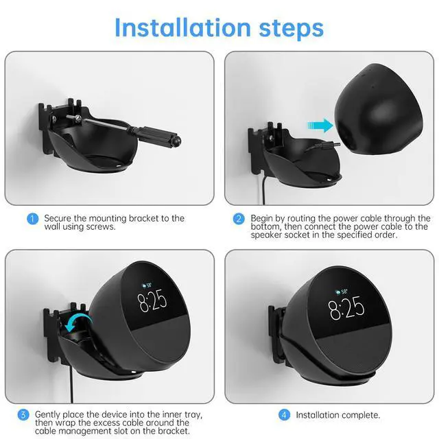 Its stylish finish complements the Spot (2024 release), adding elegance without cluttering your space. ^^ EFFORTLESS CABLE MANAGEMENT An integrated groove neatly organizes and conceals excess wires, eliminating messy tangles. Keep your area tidy and clutter-free while maintaining easy access to your device. ^^ MAXIMIZE SPACE EFFICIENCY Free up counter space by mounting your Spot on the wallideal for kitchens, bedrooms, offices, or living rooms. This solution combines functionality with style, keeping your device within reach and enhancing room aesthetics.