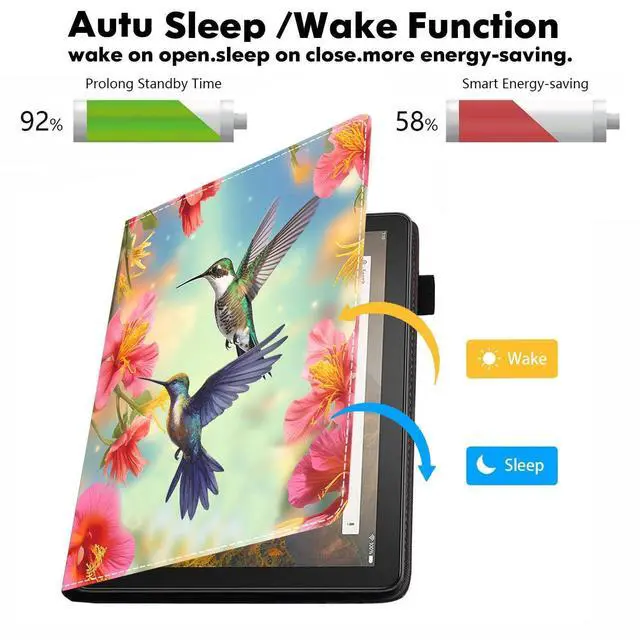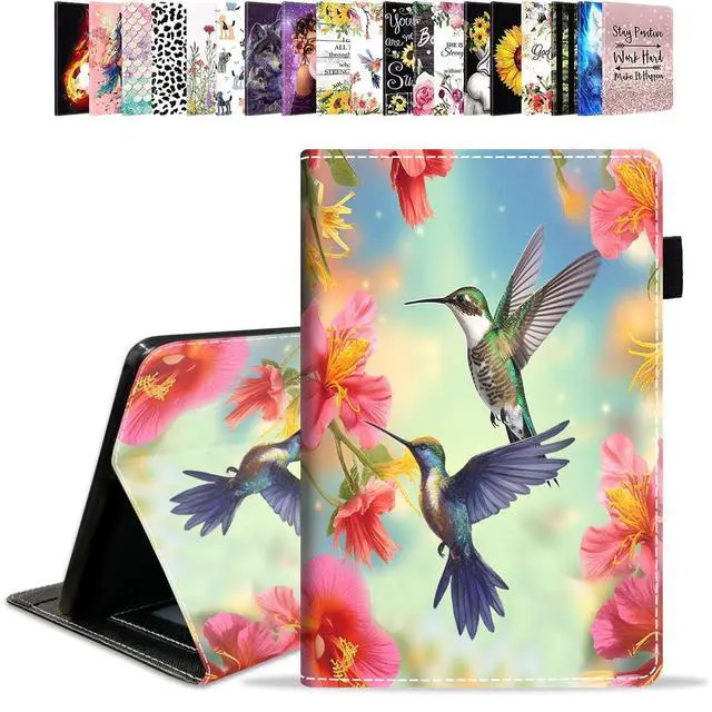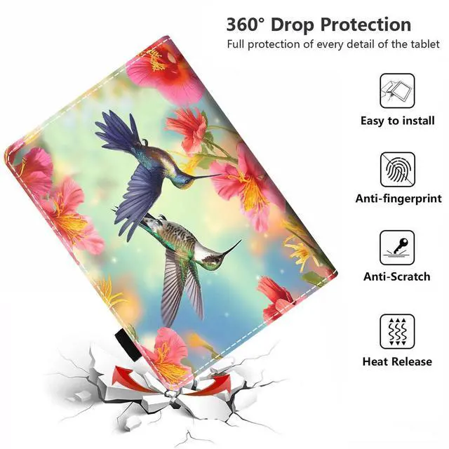 POIUYTREW Case for Kindle Fire HD 8/Fire HD 8 Plus Tablet (12th/10th Generation, 2024/2022/2020 Release) - PU Leather Folio Case with Smart Auto Wake/Sleep, Hummingbird Flowers