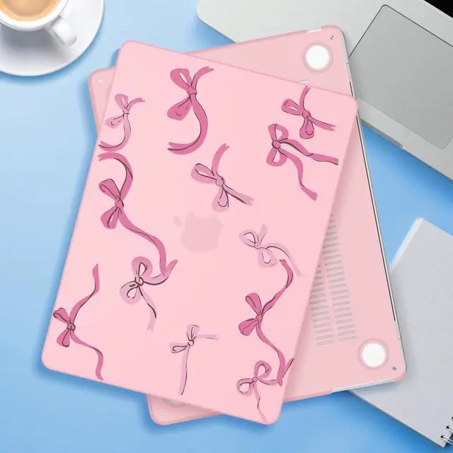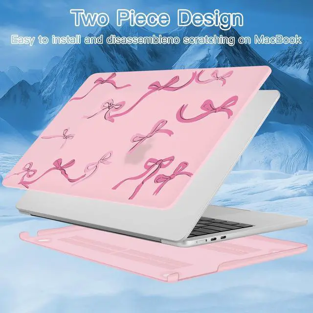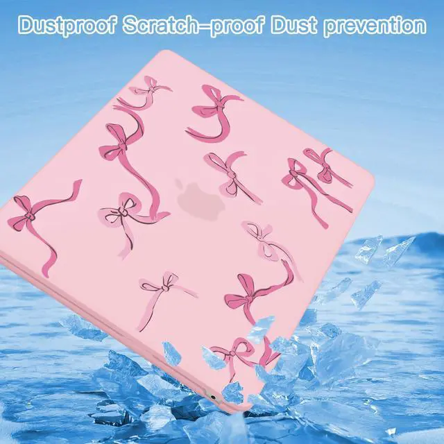 ICEKEE Compatible with MacBook Air 15 inch M5 2026 2025-2023 Release M4 M3 M2 A3448 A3241 A3114 A2941, Plastic Hard Shell Case & Keyboard Cover & Screen Protector, Chalk Pink Bow